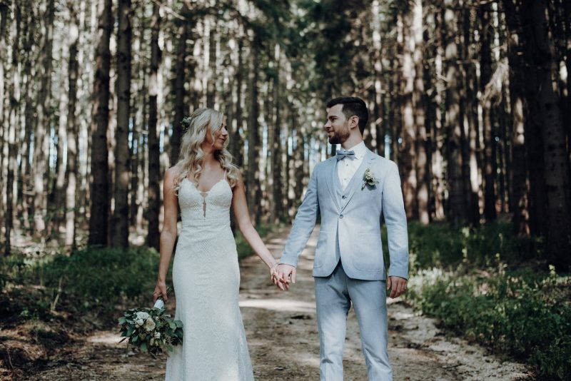 Perfekt, das war wohl der Tag von Carina & Daniel. Die beiden haben es gewagt und im September 2020 geheiratet – trotz der Angst, wegen Corona kurzfristig alles abblasen zu müssen. Wir starteten in der Baumschule Christoph in Weichenberg mit dem Fotoshooting und im Anschluss fuhren wir zur standesamtlichen Trauung in Inchenhofen. Dort war dann auch die Feier im Biergarten vom Voglbräu und im Voglbräu Chalet.